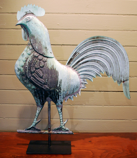 Copper Rooster Weathervane with Perfect Verdigris Surface,