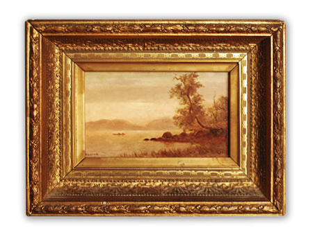 “Sunset on a White Mountain Lake,” Lemuel Eldred, signed lower left, circa 1850