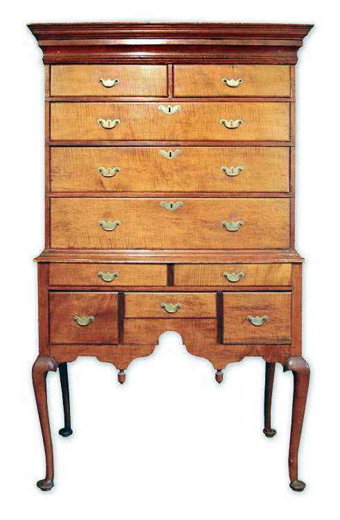 Queen Anne Tiger Maple Highboy, New England, circa 1750-60