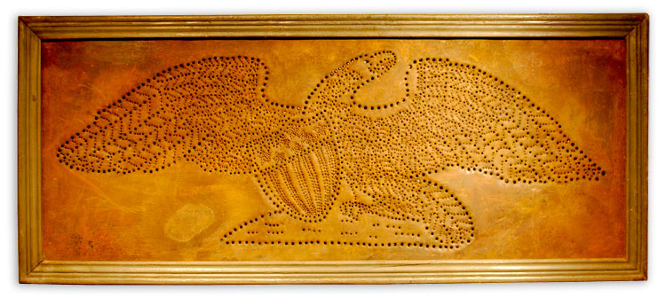 Punched Tin Panel Depicting Spread Wing Eagle and Shield, American, ca. 1830-60